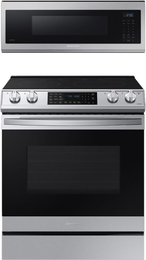 Samsung 2 Piece Kitchen Package with slide in electric range and over the range microwaveRead More