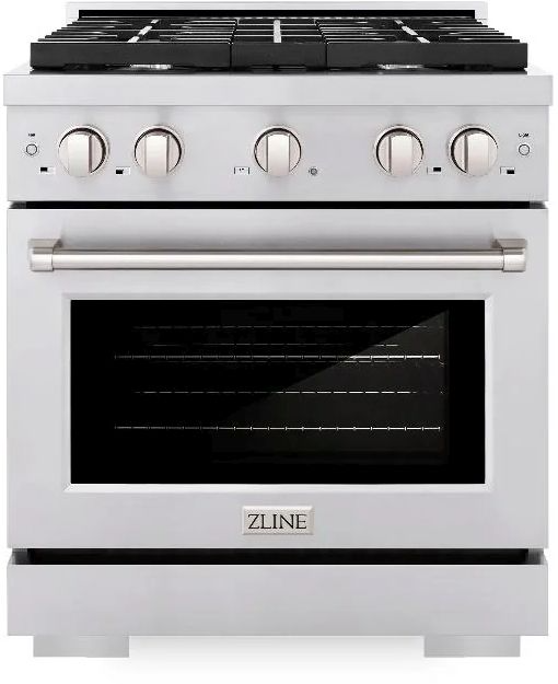 The ZLINE 30 in. 4.2 cu. ft. Paramount Dual Fuel Range with 4 Burner Gas Cooktop and Electric Convection Oven in Stainless Steel (SDR30) combines the versatility of a gas cooktop with 4 Italian-made auto-reignition burners, an electric convection oven with digital thermostat technology, enhanced cast iron grates, and a Horizon oven door window design allowing you to master every meal.